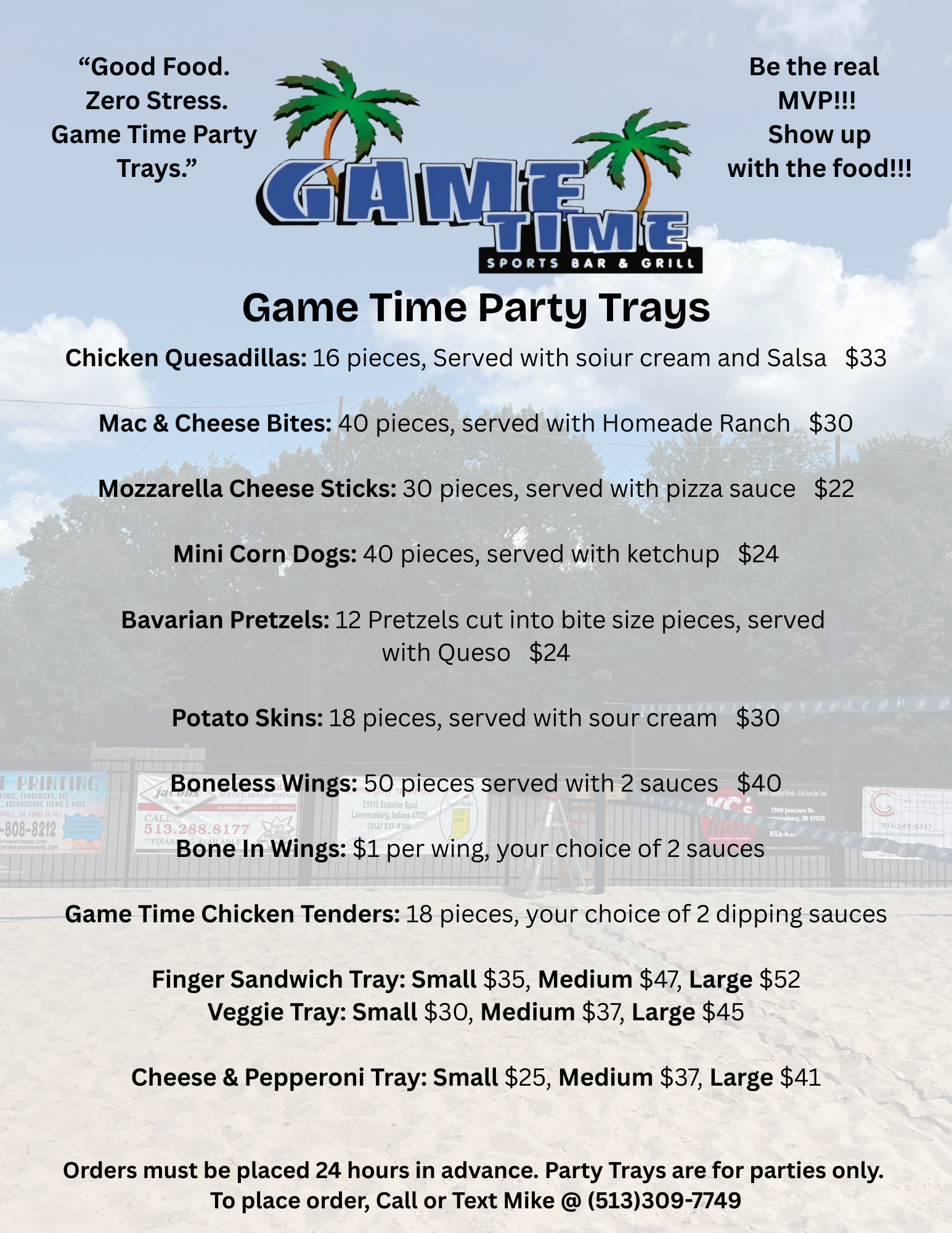 GAME TIME MENUS Newport Menu Items Bright Menu Items Newport: (859) 261-1450 Bright: (930) 234-2002